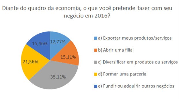 Os empresários querem tentar dividir o risco da operação: 35% respondeu que pretende diversificar produtos ou serviços e 21,5% querem formar uma parceria.