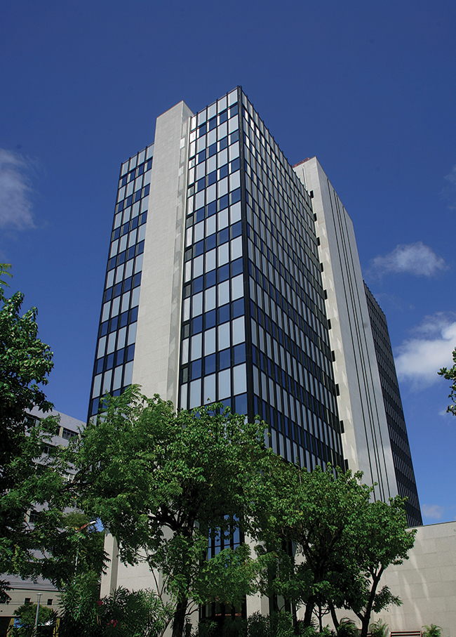 Acima, projeto de revitalização do Edifício Banco Central (Fortaleza/CE). Além da revitalização da antiga fachada, o maior desafio deste projeto era agregar valor econômico e sustentável à construção da década de 70. A aplicação do Sistema Retrofit® da Kiir na fachada gerou significativa redução de 50% no consumo de energia elétrica pelo ar condicionado. A revitalização trouxe ainda melhorias significativas na acústica do prédio, reduzindo os ruídos externos, trazendo conforto para todos. No processo, os vidros comuns foram substituídos por laminados de 8 mm, refletivos, prata PN 114, com instalação de revestimento ACM 4 mm silver e pintura Kaynar. Nas empenas de concreto foram aplicados 4333 m2 de Granito Branco Ceará, instalados com inserts metálicos em aço Inox 304.