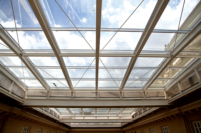Centro Cultural Banco do Brasil (Belo Horizonte/MG). O desafio da PKO nesta obra de revitalização era dar proteção contra chuva, vento e iluminação natural ao pátio aberto da edificação de 1930, mantendo o conforto térmico e acústico. A solução para a cobertura foi o vidro insulado-laminado refletivo, prata. A aplicação gerou isolamento acústico e reduziu um pouco a luminosidade, com a reflexão da energia solar sobre o pátio, a fim de evitar ofuscamento visual e um ‘efeito estufa