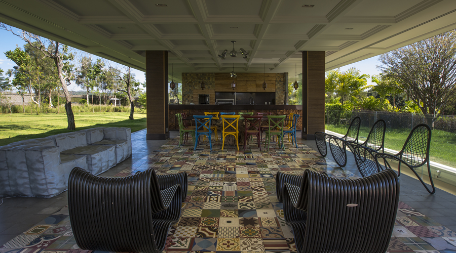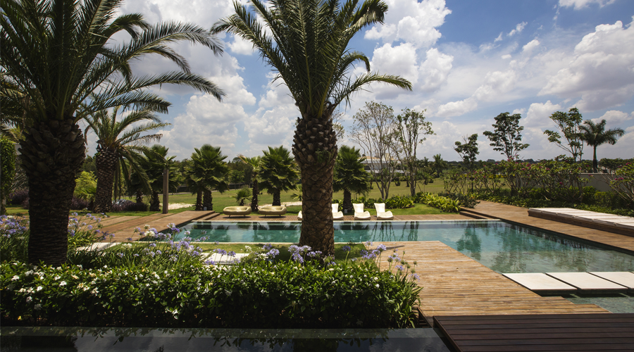 O paisagismo ficou a cargo de Alex Hanazaki, que complementou toda a modernidade ao local com um lindo jardim que conta com palmeiras.