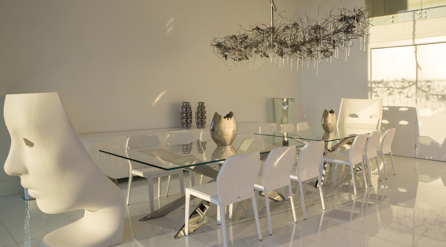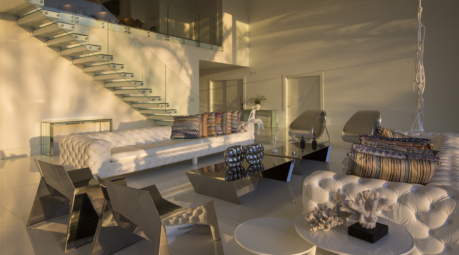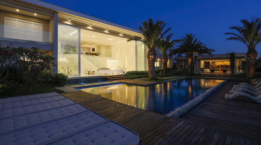 Com 370m² construídos em um terreno de 490 m², o projeto alcançou o objetivo de ser uma residência com conforto e sofisticação. O arquiteto partiu de ideias e inspirações modernas para desenvolver uma casa totalmente integrada, com muito luxo e peças de designers consagrados no mundo.