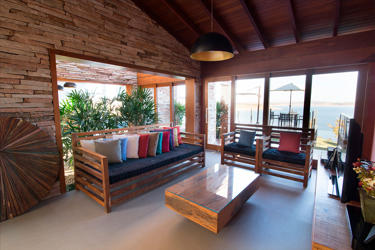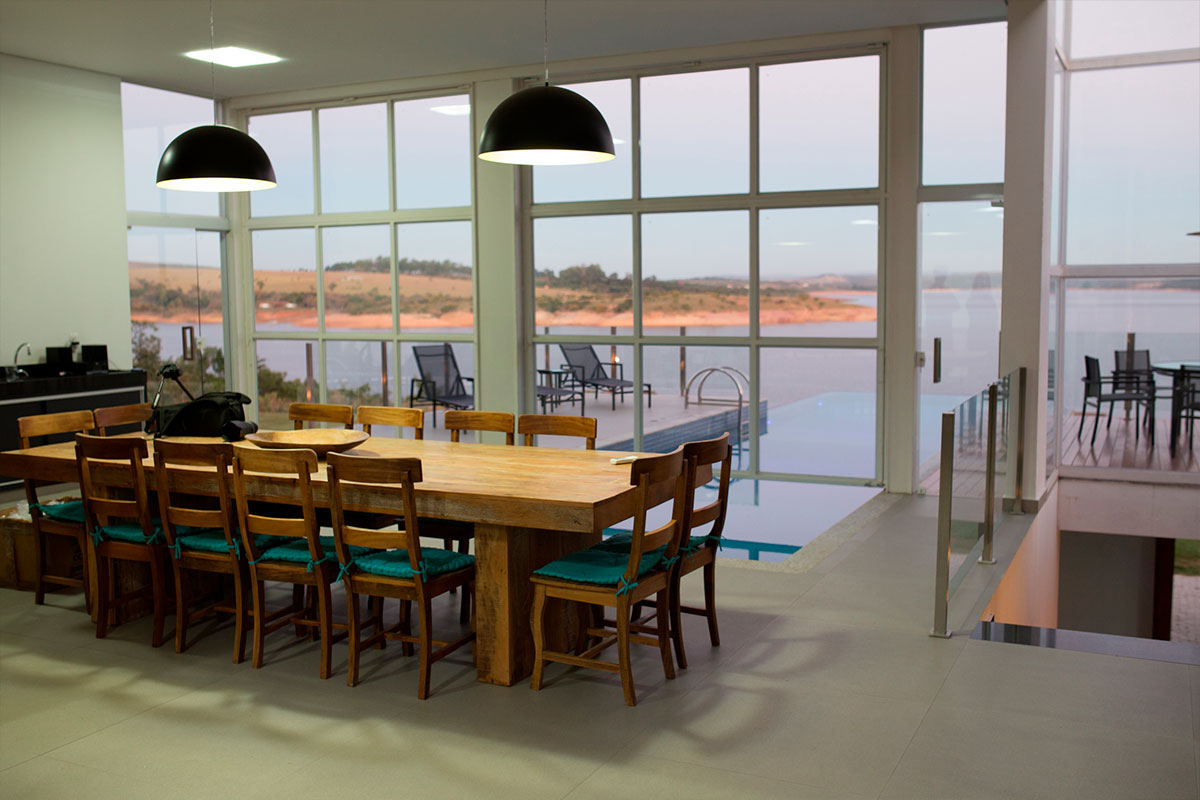 Residência mineira foi implantada de forma a proporcionar vista para o Lago de Furnas em todos ambientes
