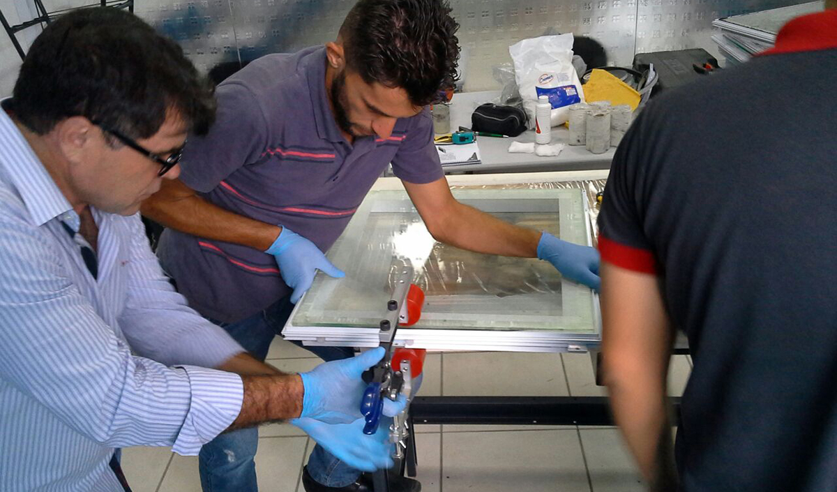 Alunos aprendem como instalar uma fachada pele de vidro no curso da Vidro Impresso