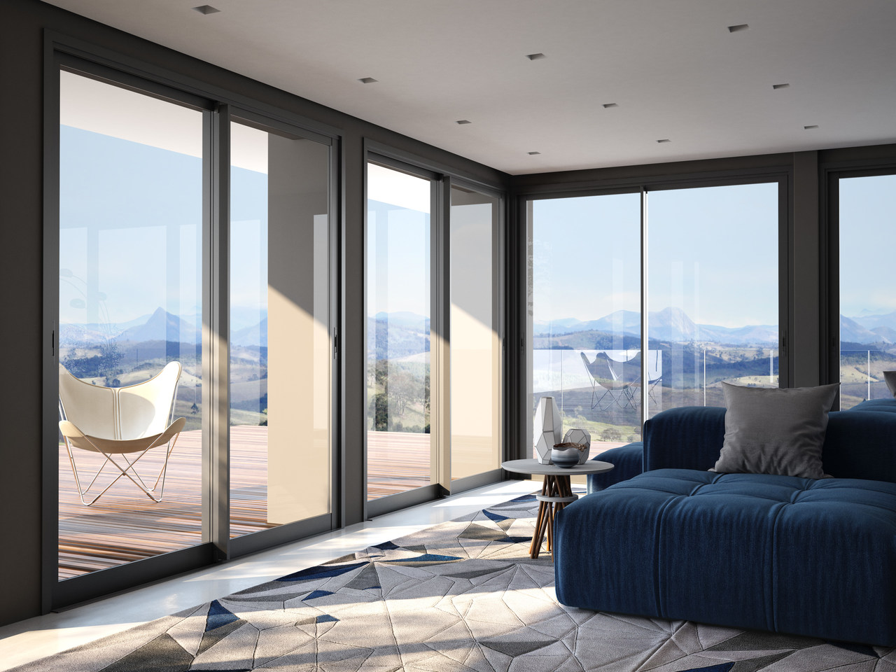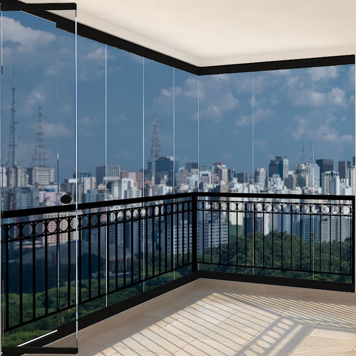 A Mirante consiste em um fechamento de sacada deslizante-giratório, envidraçado sem perfis verticais e fácil de instalar. O sistema reduz os ruídos externos, protege os ambientes dos raios solares e ventos, diferenciando-se por sua flexibilidade, e possibilita instalações sobre o gradil ou sobre o piso e em varandas de geometrias variadas.