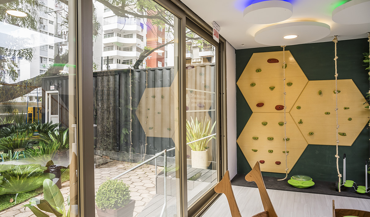 Além dos benefícios funcionais, a estética é um dos diferenciais da linha Habitat. O vidro Habitat Refletivo Champanhe, por exemplo, adequou-se perfeitamente na Brinquedoteca, espaço assinado pelas arquitetas Natália Arruda e Maynara Mariano. A proposta do local altamente sofisticado pelo aspecto refletivo que a aplicação do vidro em suas janelas proporcionou, foi destacar a simplicidade dos brinquedos analógicos e suas possibilidades para o desenvolvimento das habilidades visuais da criança.