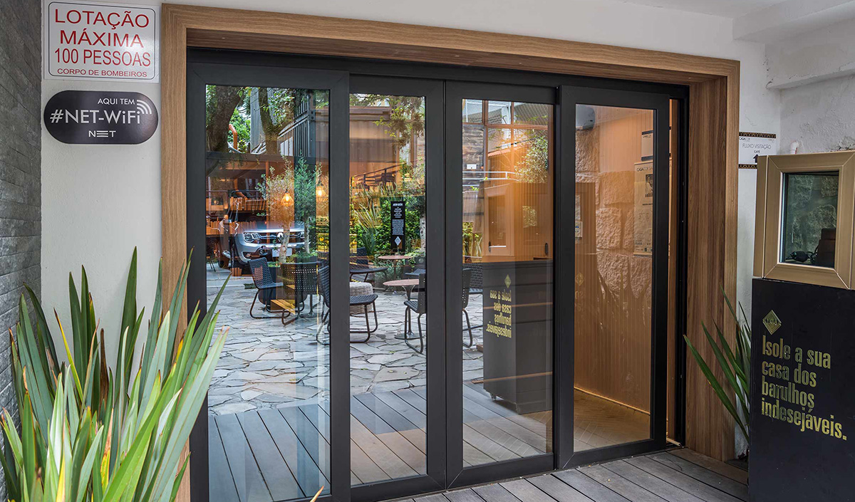 O vidro Habitat Neutro Incolor também dialogou com o interior e exterior do Restô Bar, assinado pelos Karoline Bernardo e Sidnei Machado.  As janelas envidraçadas integraram os ambientes da casa, que seriam a sala interna e o restaurante criado no quintal.