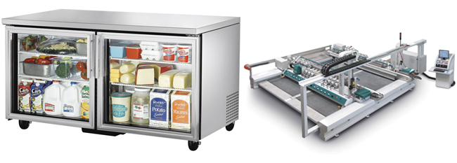 Vidros low-e também são eficazes na linha branca. Na foto, portas em vidro low-e sob balcão refrigerado isolam a temperatura, conservando os alimentos.
