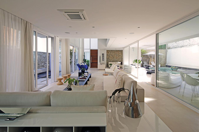 A arquiteta responsável pelo projeto Monica Drucker, destaca a instalação dos panos de vidro e dos terraços em determinados pontos estratégicos, que garantem a integração total entre os ambientes e as áreas externas, além da entrada de luz solar e ventilação naturais.