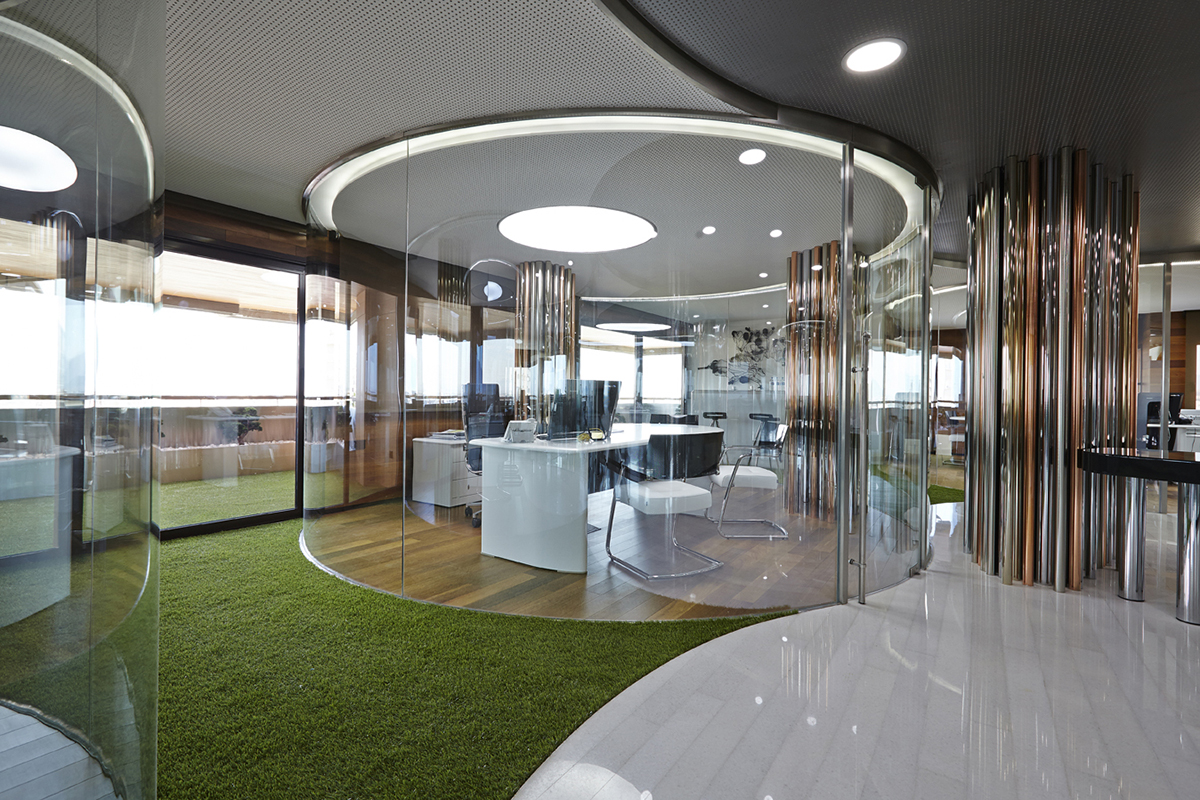 Oficinas Baraka Murcia, projeto de 2013 que utilizou os CRITEMP® Curvado Laminado 66.4 – StopSol Supersilver Neutro 6 mm # 2 da Cricursa