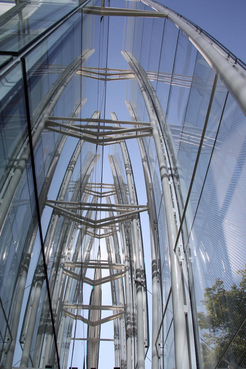 Um funil de vidro e aço de 36 m de altura foi parcialmente construído com painéis de vidro curvo dobrados. As unidades de vidro curvo são suportadas horizontalmente apenas por um sistema de envidraçamento estrutural e foram formatadas por modelos tridimensionais projetados por computação gráfica. A superfície do “cristal” soma mais de 3,5 mil m2 de vidro, e inclui aproximadamente 2 mil chapas do material. O processo que envolveu o projeto e a aplicação dos vidros que revestem o cone também foi bastante complexo.