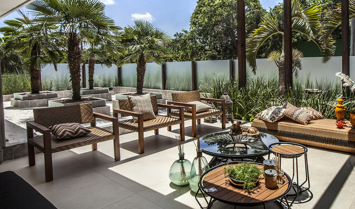 Já o SGG Aramado, que se caracteriza por possuir em sua composição uma tela metálica que oferece maior segurança em caso de quebra, foi aplicado como cobertura em vários ambientes, entre eles a Fachada Sustentável, dos arquitetos Catharina Macedo, Sheila Beatriz e Roberto Lecomte, e no bistrô da arquiteta Juliana Garrocho.