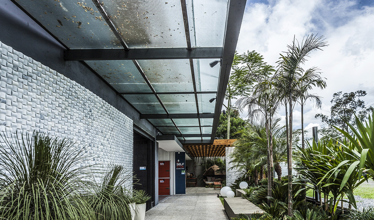 O SGG Aramado, que possui uma tela metálica para oferecer maior segurança em caso de quebra, foi aplicado como cobertura em vários ambientes
