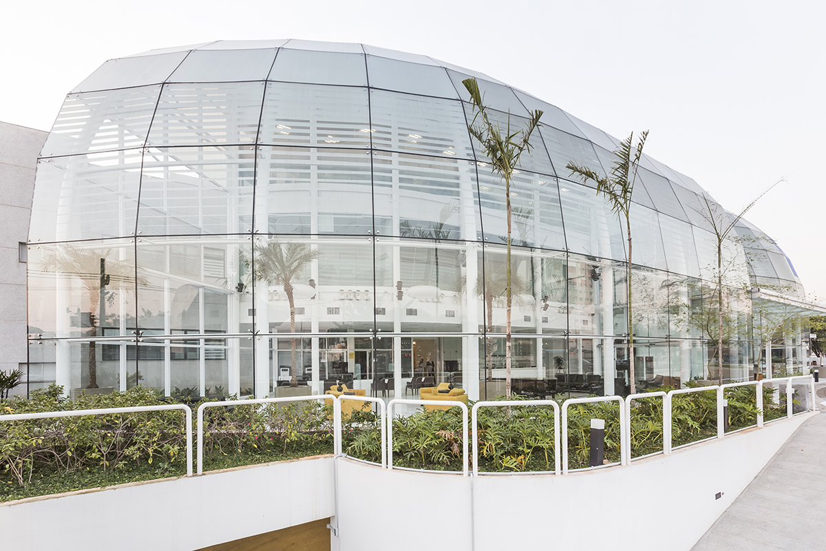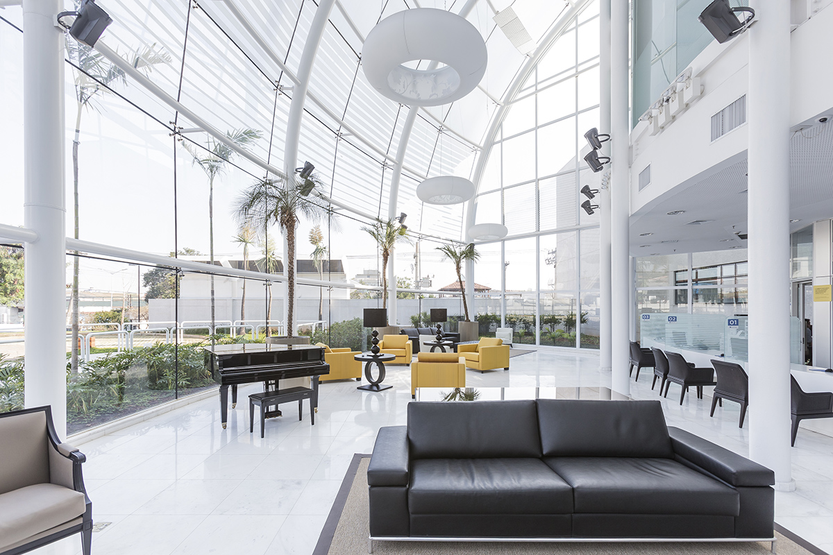 Mesmo em se tratando de um hospital, o arquiteto teve o cuidado de utilizar vidros que barrassem a incidência de ruídos, uma vez que o prédio fica próximo ao Aeroporto de Congonhas, em São Paulo.