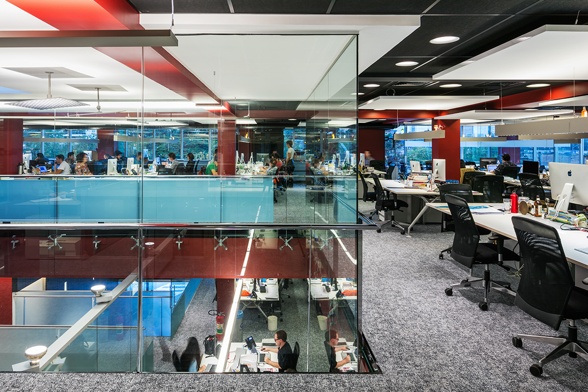 Quem passa pela Marginal Pinheiros, em São Paulo, já deve ter reparado em um edifício todo espelhado. A sede da Y&R Agência de Publicidade e Propaganda chama a atenção pela fachada toda de vidro. Durante o dia, somente quem está dentro do edifício vê a cidade. Já a noite, a cidade pode contemplar toda parte interna do escritório. O projeto foi idealizado em 2003, porém passou por uma repaginada em 2015 pelo escritório de arquitetura SCAA. De acordo com Sérgio Camargo, arquiteto responsável pelo retrofit, nos dois momentos de concretização do edifício o vidro tinha como proposta a transparência.