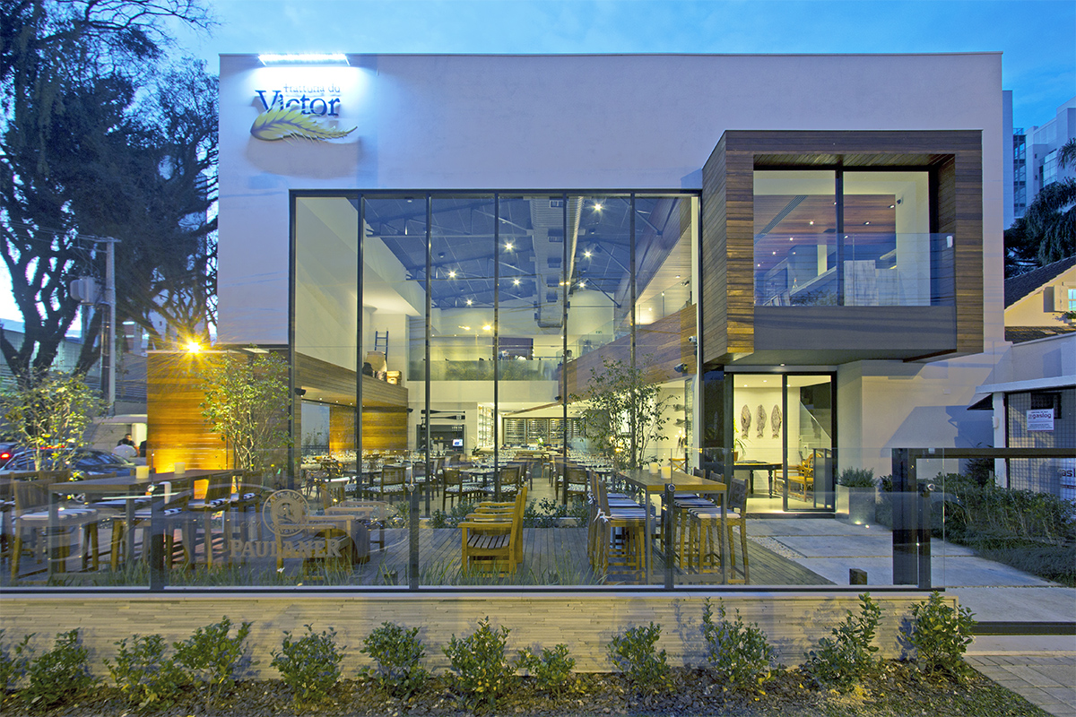 Arquitetura com valorização do espaço público. Essa foi uma das propostas do escritório do arquiteto Jayme Bernardo, de Curitiba, quando projetou o Bar do Victor, localizado em frente à praça da Espanha, área nobre e bastante movimentada da cidade. Segundo o arquiteto, desde a primeira reunião com o cliente a ideia era de um ambiente mais claro, bem iluminado e que valorizasse o entorno da praça.