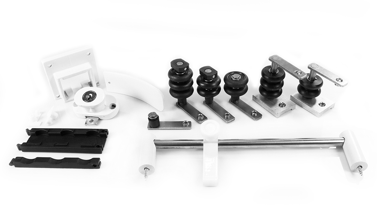 A empresa possui roldanas, estacionamento, kit pivot e todos os acessórios necessários para um envidraçamento de sacada, em kits ou avulso