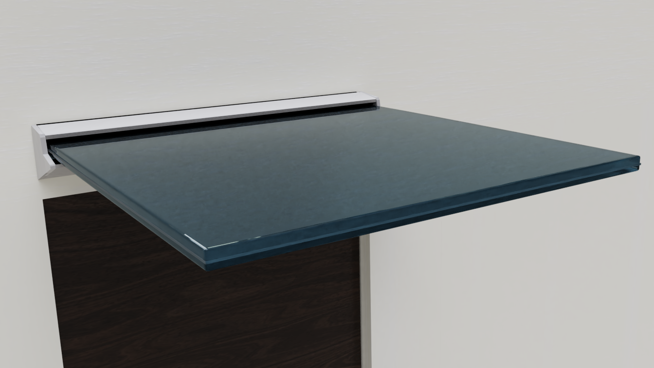 Produto leve, com design arrojado e minimalista, o Kit Marquise WR reúne perfeito equilíbrio entre proporções e o sistema permite sua instalação lateral, onde se posiciona o vidro na horizontal, proporcionando leveza estética e um visual sóbrio e elegante. Existe também a possibilidade de se introduzir uma fita de LED entre o alumínio e o vidro, permitindo iluminação local e um interessante efeito decorativo.